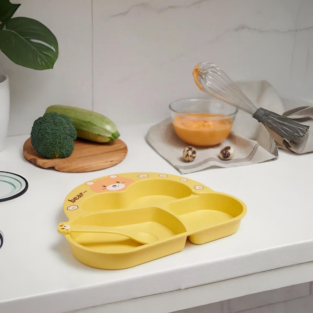 Cartoon Divided Plate Set for Kids – With Spoon, Fork & Chopsticks Bear Yellow