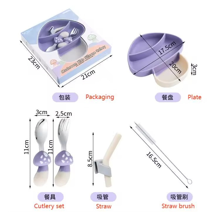 Make mealtime fun, stress-free, and mess-free with our Creative Silicone Mushroom-Designed Plate for Kids! Thoughtfully crafted with integrated partitions, this adorable infant tableware set keeps foods neatly separated—perfect for introducing solid foods and balanced meals.